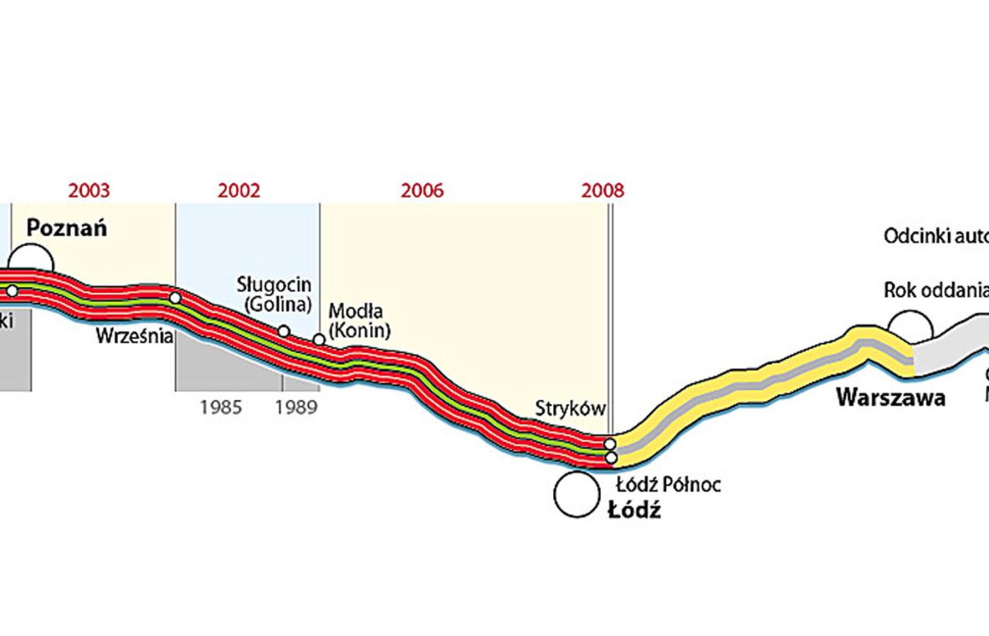 Zapał kolejnych rządów do budowy autostrad hamowała świadomość, że na budowie, którą one rozpoczną, wstęgę będą przecinali następcy. Premier Jarosław Kaczyński otwierany odcinek A2 z Konina do Łodzi, zbudowany przez rząd Marka Belki, przedstawiał jako sukces IV RP: można budować szybko autostrady? Można! Choć akurat jego rząd do budowania nie miał serca. A2 za kadencji PiS wydłużyła się o... półtora kilometra. Przybyło za to innych problemów. Zdecydowano bowiem, że dalsza część A2 z Łodzi do Warszawy będzie budowana w systemie koncesyjnym przez prywatną firmę.