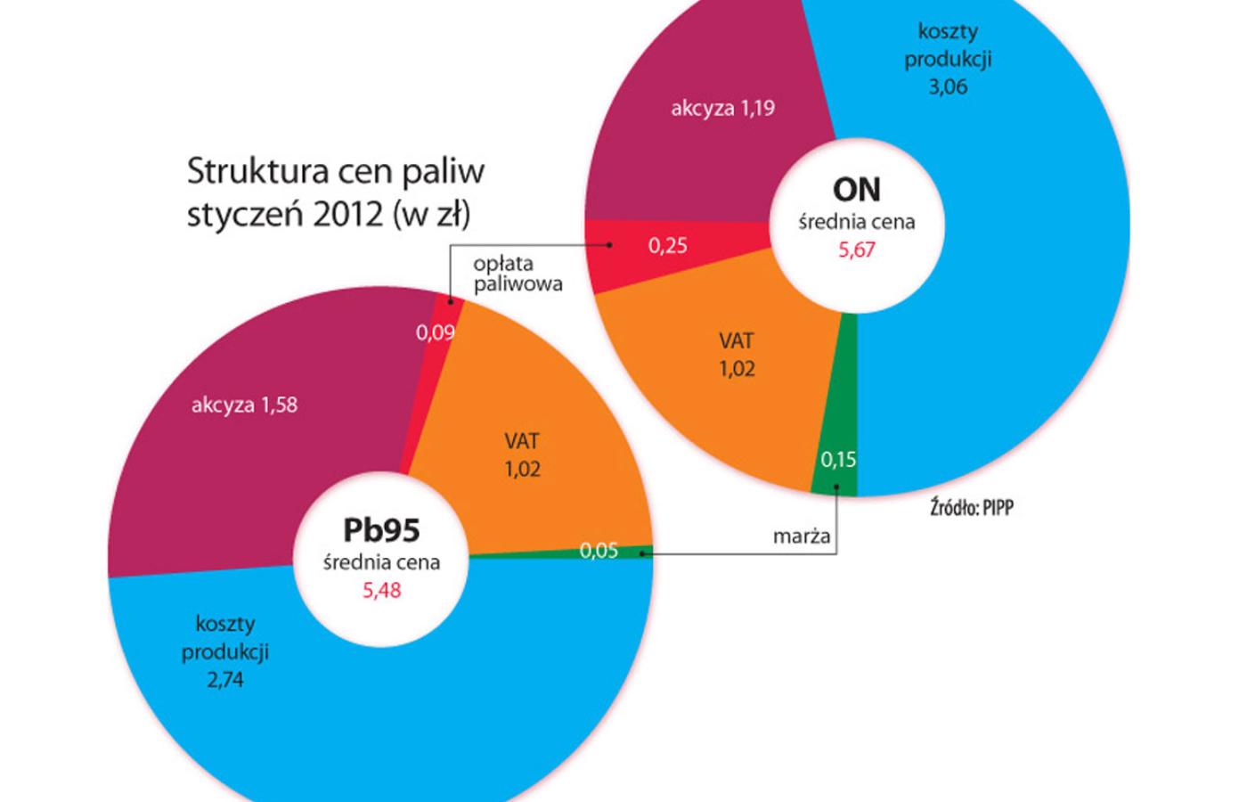 Tymczasem ceny paliw rosną w szybkim tempie, a oleju napędowego w jeszcze szybszym. Zaledwie kilka lat temu był tańszy od benzyny co najmniej o kilkadziesiąt groszy na litrze. W październiku 2011 r. hurtowe ceny paliw zrównały się, a dziś ON jest droższy od benzyny Pb95. W ciągu minionego roku cena oleju napędowego wzrosła aż o 19 proc., wówczas gdy benzyny o 11 proc., zaś autogazu LPG o 8 proc. Zdaniem głównej ekonomistki Polskiej Konfederacji Pracodawców Prywatnych Lewiatan dr Małgorzaty Starczewskiej-Krzysztoszek wzrost cen paliw jest jednym z głównych czynników nakręcających inflację.