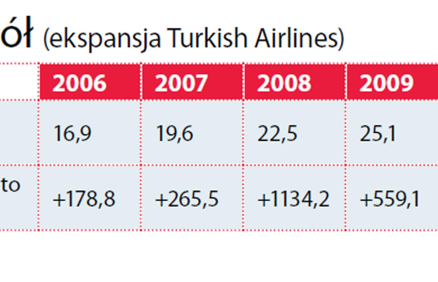 Która linia oferuje największy wybór lotów z jednego miejsca w Europie? Amatorom zwiedzania świata na myśl przychodzą przede wszystkim Lufthansa we Frankfurcie, Air France w Paryżu i British Airways na londyńskim Heathrow. Tymczasem, jak wyliczył niedawno specjalistyczny portal Anna.aero, rekordzistą są operujące z lotniska w europejskiej części Stambułu Turkish Airlines: zawiozą nas bez międzylądowań i przesiadek w 172 miejsca na całym świecie. Na razie Polaków korzystających z usług tego przewoźnika jest niewielu, bo też nie traktował dotąd naszego kraju szczególnie. Co drugi dzień jego samoloty łączą Warszawę ze Stambułem, z portów regionalnych w Polsce Turkish w ogóle nie lata. Być może jednak to właśnie on stanie się nowym współwłaścicielem naszego narodowego przewoźnika.