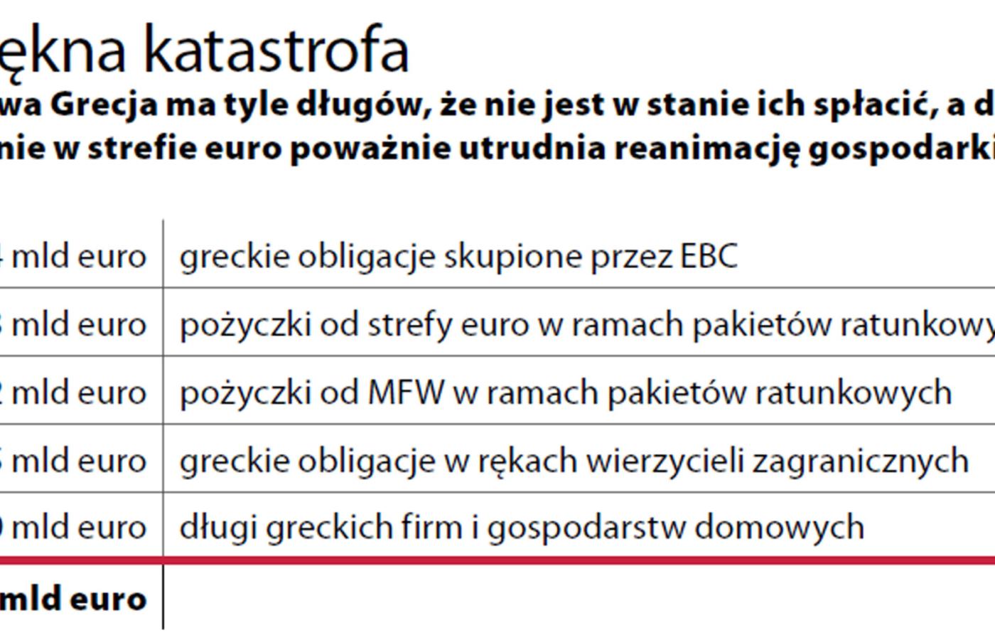Polska uniknie tego obowiązku, ale ucierpi w inny sposób. Już w ubiegłym tygodniu kurs złotego poszybował w dół, gdy inwestorzy zaczęli wycofywać kapitał z bardziej ryzykownych lokat, m.in. walut gospodarek wschodzących, i przenosić go do bezpiecznych przestani, głównie franka szwajcarskiego. Jeśli Grecja wróci do drachmy, złoty osłabi się jeszcze bardziej, ale umocni się ponownie, gdy przywódcy strefy euro opanują sytuację. Jeśli ci ostatni nie staną na wysokości zadania, zrobi się nieciekawie. Tak czy owak, Narodowy Bank Polski będzie skupował złotego, w ostateczności z wykorzystaniem linii kredytowej z MFW. NBP poradził sobie po upadku Lehman Brothers, gdy złoty stracił ponad 30 proc. wartości.