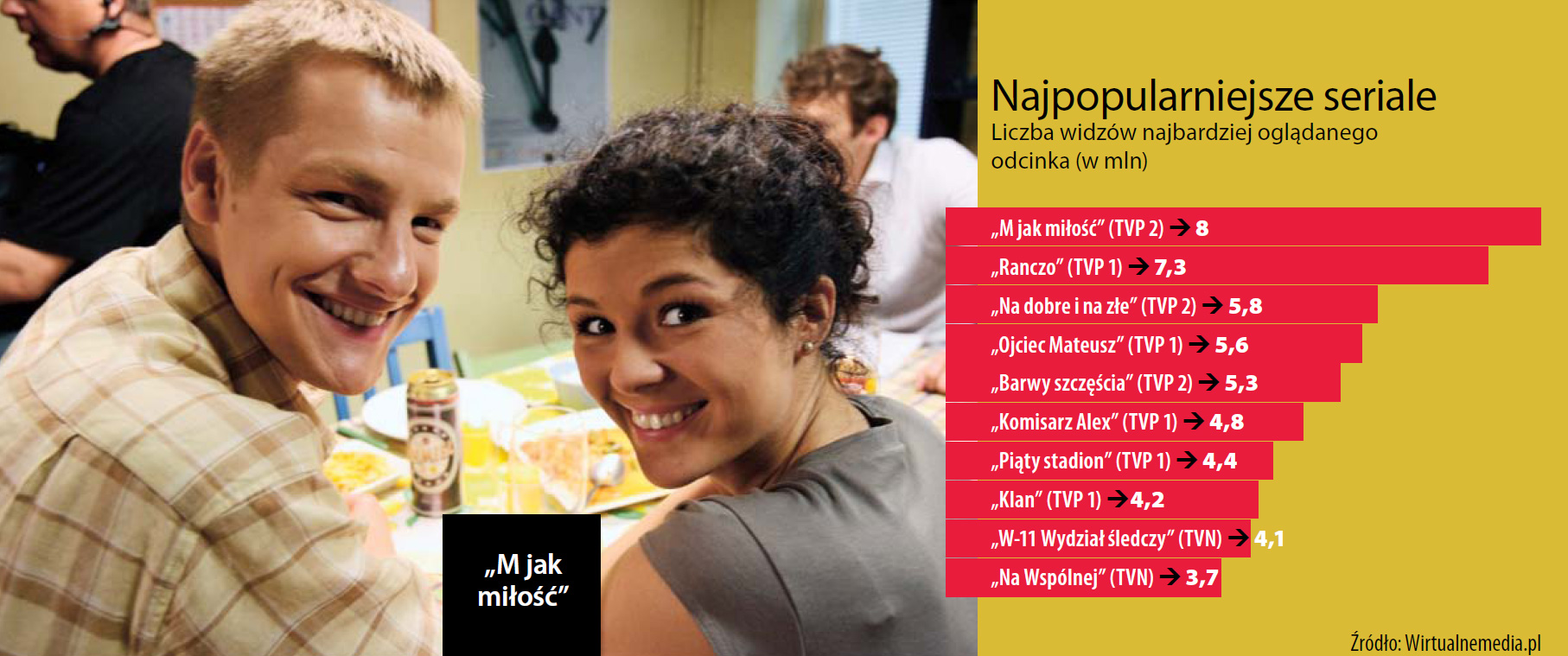 Pewniakiem stało się „Ranczo”, które jednak na początku też trudno było sprzedać. – Zaproponowałem je TVN, stacja właśnie szukała serialu, który zastąpiłby bardzo popularnych „Kasię i Tomka” – mówi Maciej Strzembosz (Studio A, obecnie kontrolowane przez ATM). Firma Strzembosza była producentem „Kasi i Tomka”. Tu główne role także mieli więc grać Joanna Brodzik i Paweł Wilczak. Pomysł się jednak nie spodobał. Widownia, na której zależy TVN, nie jest zainteresowana życiem na prowincji. Teraz stacja żałuje, bo serial stał się hitem, i to dla wielkomiejskiej widowni. Okazał się dla niej bardzo egzotyczny. W TVP, dokąd zaniósł go producent, także na początku nikt w niego nie wierzył. Nawet teraz, gdy zyskał taką popularność, wcale nie jest oczywiste, że kolejne serie zostaną kupione z entuzjazmem. To kwestia ceny.
