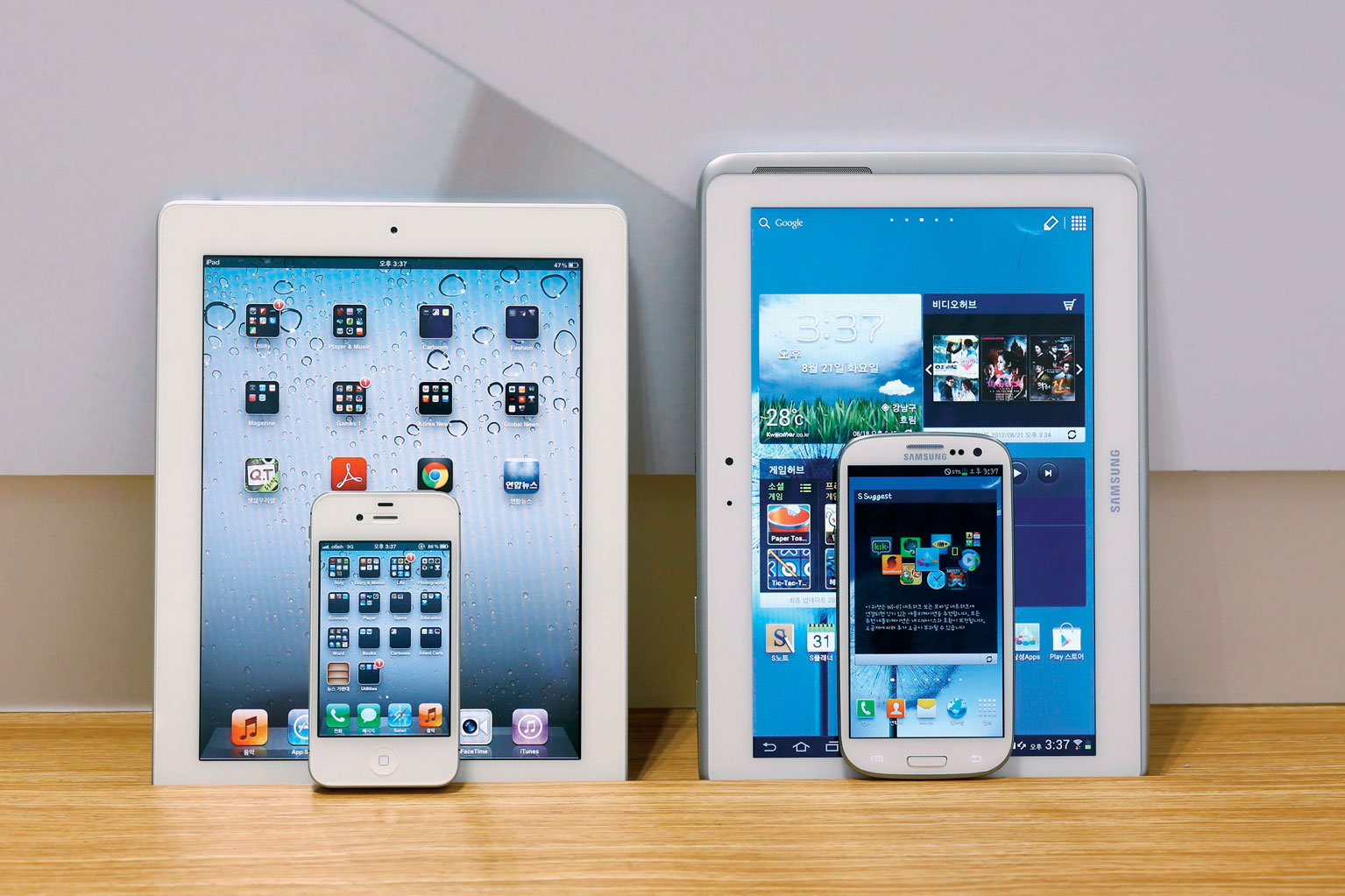 Jest tak: amerykański koncern Apple, producent iPhone’a i iPada, ma patenty m.in. na charakterystyczny kształt z zaokrąglonymi rogami i przeszkleniem urządzenia, a także na sposób obsługi ruchem palców – przewijanie, powiększanie czy „efekt gumki”, czyli zabawne sprężynowanie obrazu, kiedy podczas przewijania puści się palec. Łudząco podobne rozwiązania mają urządzenia koreańskiego konkurenta, Samsunga, z serii Galaxy.