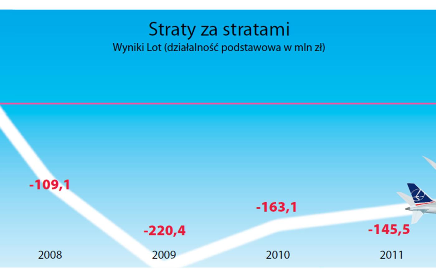 Sukcesu z Dreamlinerem Lot bardzo potrzebuje, bo jego wyniki finansowe są od dawna fatalne. Ostatni raz linia osiągnęła zyski w 2007 r., a potem było coraz gorzej. W 2011 r. na działalności operacyjnej, czyli lataniu, Lot stracił prawie 150 mln zł. W tym roku wynik miał być lepszy, ale już wiadomo, że przewoźnik znów będzie pod kreską. Lot do tej pory zachował płynność finansową, bo wyprzedawał swój majątek – spółki zależne zajmujące się obsługą samolotów, udziały w sieci kasyn czy zbędne, a atrakcyjne nieruchomości. Linia liczy też na kolejny zastrzyk pieniędzy, bo chce pozbyć się reszty akcji Eurolotu, które ma od niej odkupić Skarb Państwa.