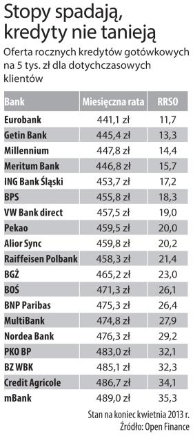 Na rynku kredytów hipotecznych, tradycyjnie przynoszących bankom spore zyski, tak źle nie było od czterech lat. Coraz mniej mogą też zarabiać na depozytach trzymanych w Narodowym Banku Polskim, bo stopy procentowe nieustannie spadają. Wiele banków próbuje więc podnosić opłaty i prowizje za korzystanie z kont i kart, choć w ten sposób trudno im radykalnie zwiększyć przychody. Tym bardziej że niektóre instytucje wyłamują się z szyku i nadal oferują darmowe rachunki osobiste. Kredyty konsumpcyjne wydają się więc bankowcom najważniejszym sposobem podreperowania własnych wyników finansowych.