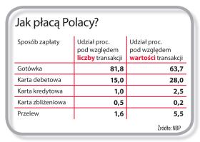 Jest jednak i druga, mniej optymistyczna strona medalu: w tysiącach małych sklepów i punktów usługowych o najprostszych płatnościach kartą ciągle można tylko pomarzyć. A tam gdzie nawet stoi terminal, często obok niego wisi przypomnienie, że karty można użyć tylko w przypadku większych zakupów. Do tego płatności bezgotówkowych nie akceptuje największa sieć detaliczna w kraju, czyli ponad 2 tys. dyskontów Biedronki. Jak to możliwe, że jesteśmy równocześnie tak rozwinięci i tak zacofani?