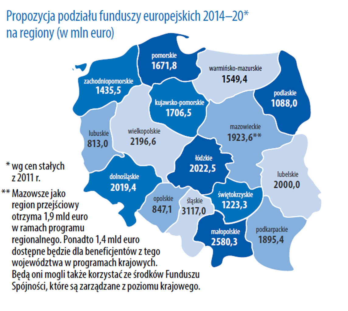 Na najbliższe siedem lat do dyspozycji będziemy mieli aż 72,9 mld euro. Plan zagospodarowania tych funduszy – określony w dokumencie zwanym Umową Partnerstwa – jest spójny w założeniach z opracowaną przez polski rząd Strategią Rozwoju Kraju na lata 2014–20 oraz unijną strategią Europa 2020.