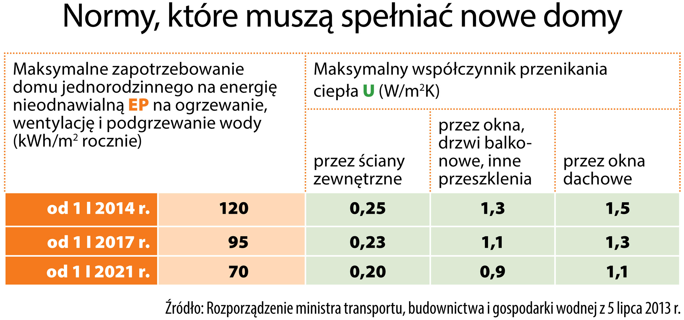 • zapotrzebowanie na tzw. nieodnawialną energię pierwotną nie może przekroczyć nowego, obniżonego ze 142,9 do 120 kWh na metr kw. rocznie, maksymalnego wskaźnika (oznaczonego literami EP),