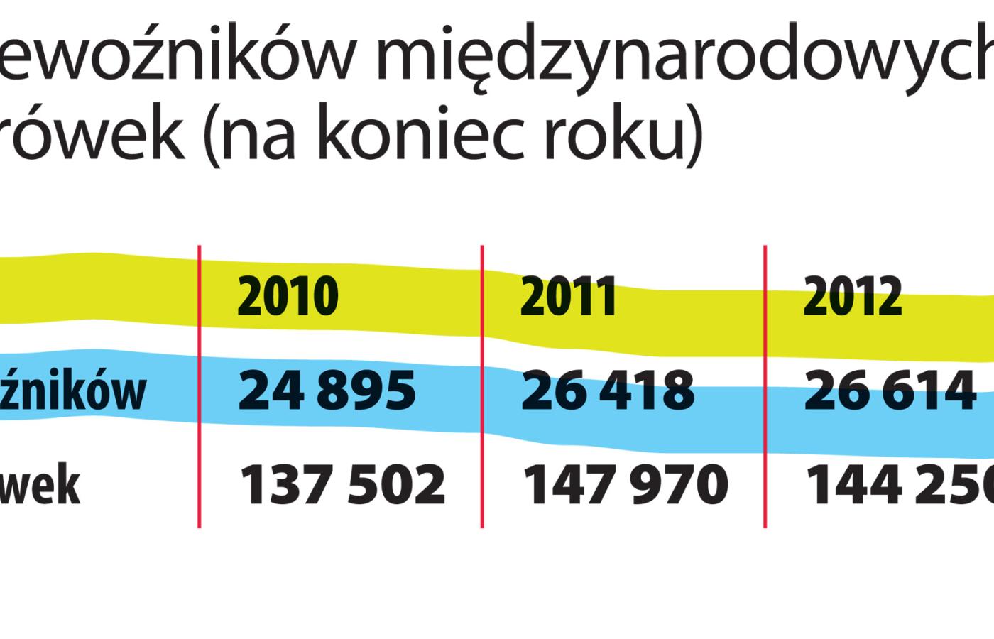 Dobre wyniki zachęcają do inwestycji w tabor. Z danych Biura Obsługi Transportu Międzynarodowego wynika, że tylko w okresie od 2004 do 2013 r. liczba zarejestrowanych w Polsce ciężarówek wykonujących przewozy międzynarodowe ładunków wzrosła blisko czterokrotnie do prawie 155 tys. W rezultacie popyt na tabor od kilku lat utrzymuje się na wysokim poziomie. W 2013 r. importerzy sprzedali w Polsce blisko 17 tys. nowych, dużych samochodów ciężarowych, gdy np. w Holandii niecałe 12 tys., a w Hiszpanii niemal 11 tys.