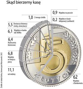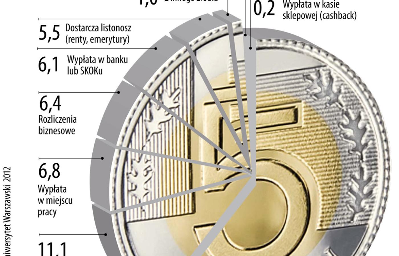 Fałszowanie banknotów jest domeną dobrze zorganizowanych międzynarodowych grup przestępczych. W ostatnich dniach przechwycono w Krakowie transport sprowadzonych z Włoch fałszywych euro wyjątkowo wysokiej jakości. Gospodarka ponosi koszty fałszerstw. Musi coraz więcej wydawać na ich tropienie, ciągle drukować kolejne banknoty, bo te, których używamy, szybko się niszczą (zwłaszcza niższe nominały). To wszystko tylko czubek góry wydatków, które generuje obrót gotówkowy. Bo szeleszczący i brzęczący ładunek trzeba magazynować, transportować, konwojować, pilnować. Wpłacać, wypłacać, liczyć, niszczyć zużyte egzemplarze (w ubiegłym roku 300 mln szt.). Dbać, by wszędzie była wystarczająca ilość banknotów i monet, bo ich brak może wywołać niepokój społeczny, ale jednocześnie by ich było nie za wiele, bo to kosztuje. Czuwa nad tym armia ludzi w oddziałach Narodowego Banku Polskiego (który zarządza obiegiem pieniądza), w bankach komercyjnych, w sklepach i firmach – urzędnicy, kasjerzy, konwojenci, strażnicy. Lista kosztów nie ma końca. Obrót gotówkowy pochłania ok.