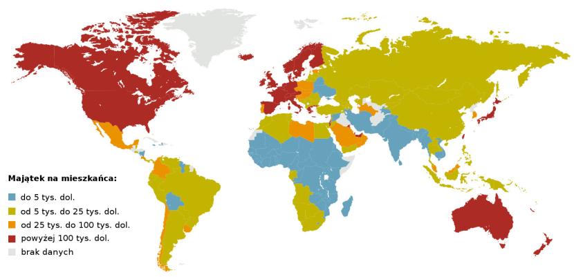 Według analityków Credit Suisse zaledwie 10 proc. najzamożniejszych mieszkańców naszej planety kontroluje aż 87 proc. światowego majątku. W Polsce wskaźnik ten jest znacznie niższy: wynosi obecnie 62,8 proc. wobec 69,9 proc. w roku 2000. Mimo osłabienia przewagi najbogatszych nad resztą społeczeństwa raport Credit Suisse wciąż zalicza Polskę do krajów o wysokiej nierówności społecznej, plasując nas w gronie takich krajów, jak Meksyk, Czechy, Chile czy Korea Płd.