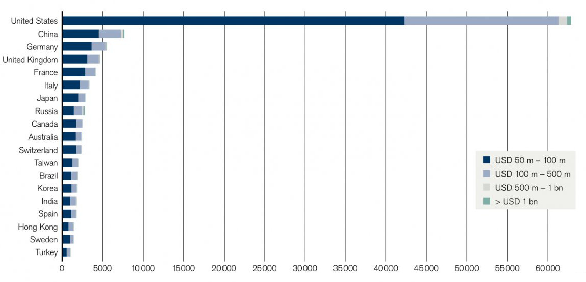 Gdzie owych superbogaczy najłatwiej spotkać? Z poniższego wykresu jednoznacznie wynika, że przede wszystkim w Stanach Zjednoczonych: