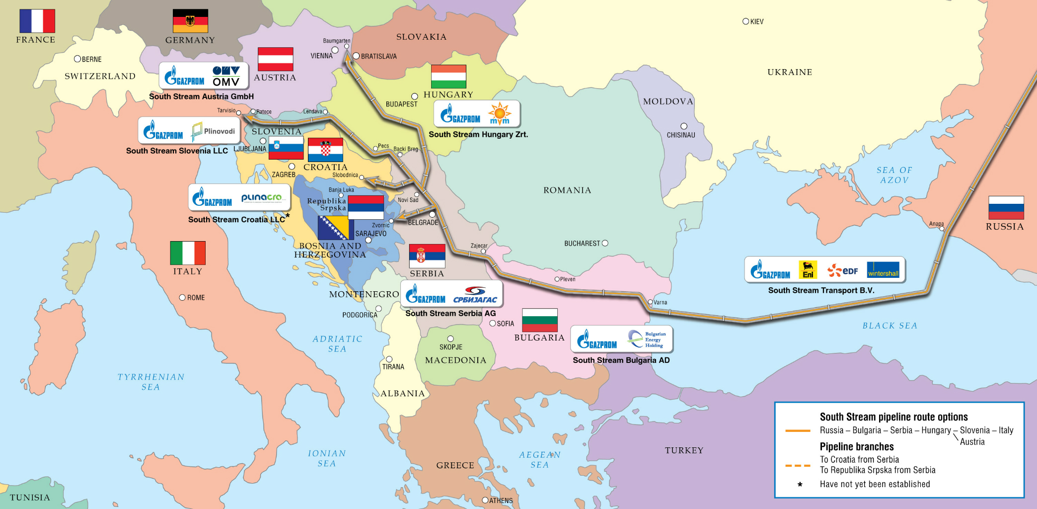 Wiele krajów południowej Europy trzymało kciuki za powodzenie gazpromowskiego projektu, zwłaszcza Węgry, Austria, Serbia. Rura miała prowadzić po dnie Morza Czarnego do Bułgarii, gdzie rozdzielałaby się na dwie nitki. Jedna miała prowadzić przez Grecję do południowych Włoch, druga przez Serbię i Węgry do Austrii. Koszt szacowano na 40 mld dol. Pierwszy gaz miał popłynąć w 2018 r.