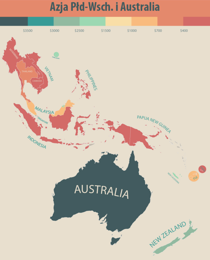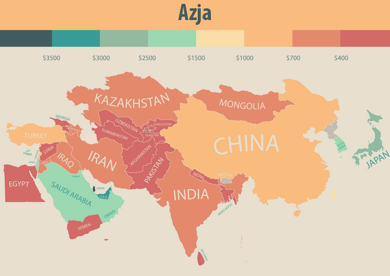 Zadania podjęli się analitycy jednej z większych baz danych – Numbeo. A efekt ich ustaleń zilustrowali (grafiki poniżej) autorzy portalu MoveHub, który we współpracy z czołowymi magazynami (dość wspomnieć „Time”, „The Guardian”, „Forbes”) przygląda się warunkom życia całej ziemskiej ludności.