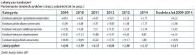 Chcielibyśmy zatem pomnażać kapitał dużo szybciej niż nam się to w rzeczywistości udaje. Jednak równocześnie to właśnie lokaty, z których warunków większość Polaków jest tak niezadowolona, pozostają zdecydowanie najpopularniejszą formą oszczędzania. Pytani o sposób ulokowania większych pieniędzy z myślą o odległej przyszłości, okazujemy się bardzo konserwatywni. Prawie 30 proc. ankietowanych, mając do dyspozycji znaczne dodatkowe środki, wybrałoby w takiej sytuacji tradycyjną lokatę, a mniej niż 10 proc. zdecydowałoby się na fundusz inwestycyjny.