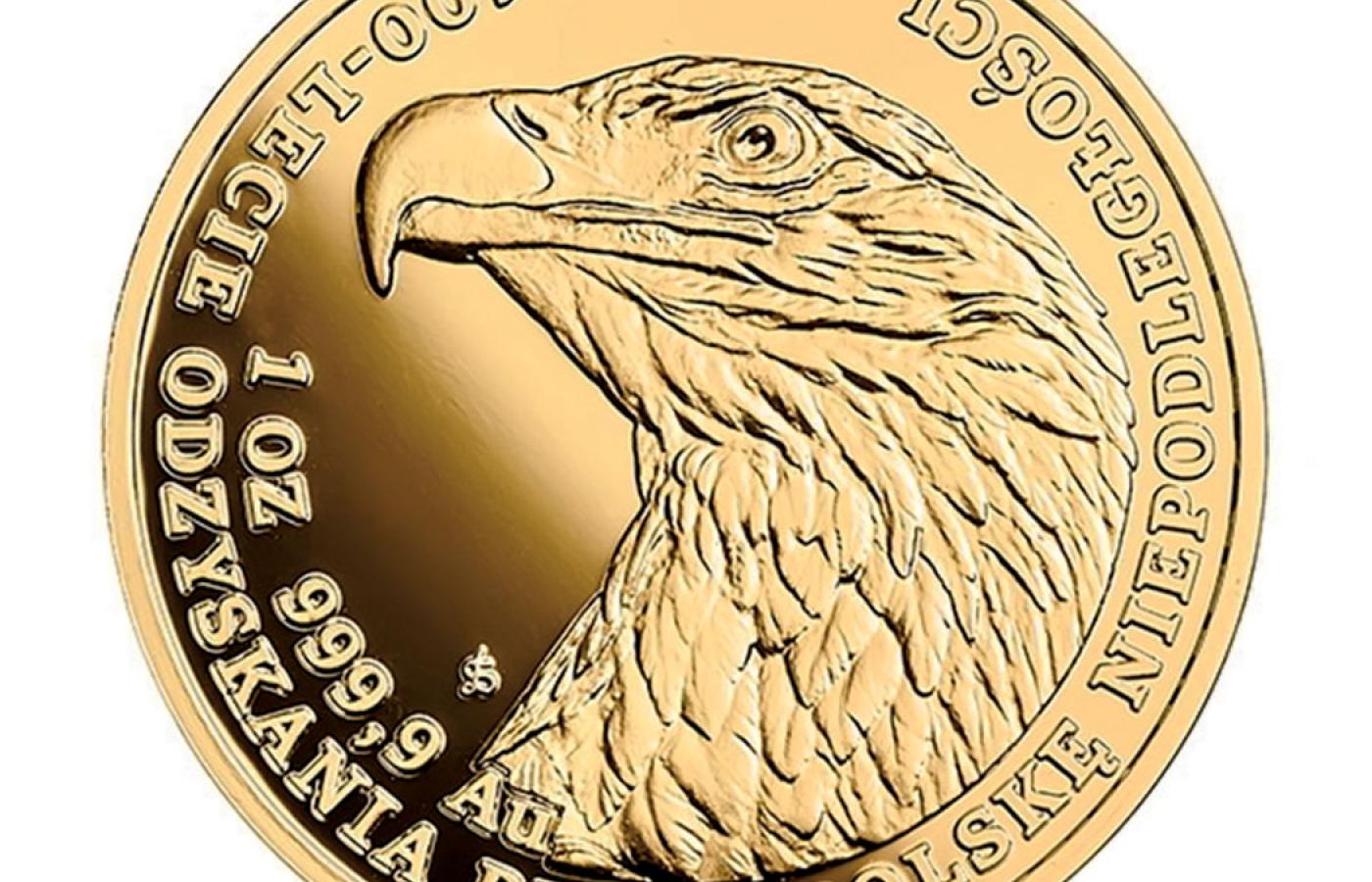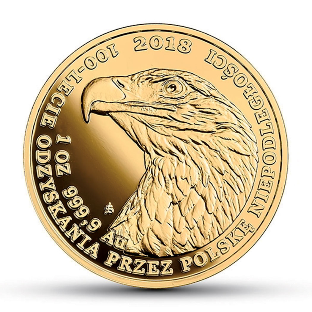 • Narodowy Bank Polski z okazji 100-lecia odzyskania przez Polskę niepodległości wypuścił złote monety (zwane monetami inwestycyjnymi lub bulionowymi) z wizerunkiem orła bielika na rewersie. Monety o nominałach 50, 100 i 500 zł wybite są w złocie o najwyższej próbie 999,9. Monety różnią się średnicą i wagą (500 zł ma średnicę 32 mm i waży 31 g). Ich cena jest ustalana codziennie na podstawie kursu złota. Np. 23 sierpnia br. moneta 500 zł kosztowała ok. 5105 zł, 50 zł – ok. 685 zł.