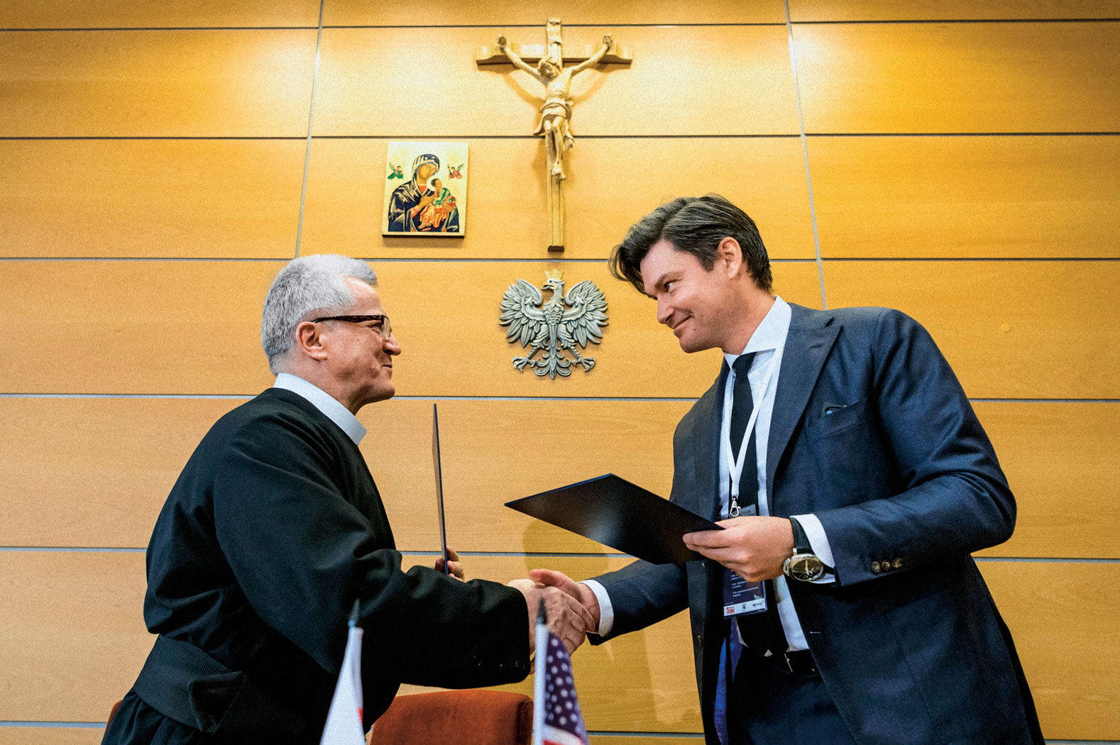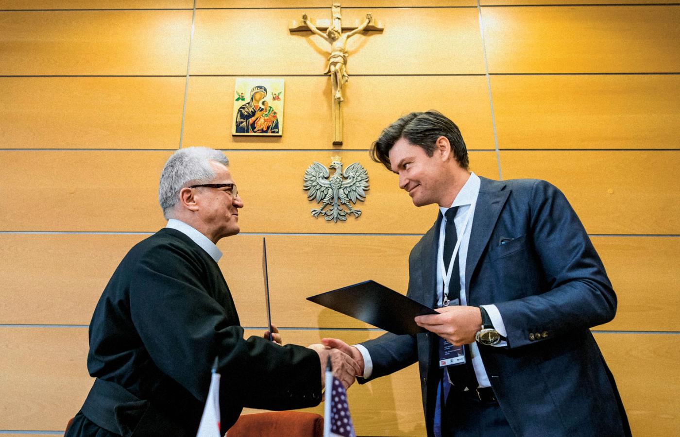 Nawet zagraniczni inwestorzy już wiedzą, że dzisiaj w cenie jest poparcie ojca Rydzyka. Amerykański fundusz private equity CVC Capital Partners postanowił nawiązać bliską współpracę z Wyższą Szkołą Kultury Społecznej i Medialnej w Toruniu. Zainaugurował ją konferencją pod hasłem „Wyzwania XXI wieku, sojusz polsko-amerykański, cyberbezpieczeństwo”. – Rozpocznie ona cykl wykładów poświęconych wyzwaniom, przed którymi stoi dzisiaj świat – poinformował Krzysztof Krawczyk, prezes CVC Polska. – One dotyczą także nas w Polsce i związane są z rewolucją cyfrową.
