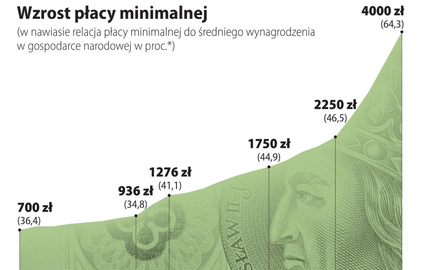 Prof. Stanisław Gomułka, były wiceminister finansów, ocenia, że jeśli zatrudnienie miałoby pozostać bez zmian, to koszt podwyżki płacy dla przedsiębiorstw wyniósłby około 32 mld zł. – Z tej sumy pracownicy otrzymaliby 21 mld zł, a Skarb Państwa (z PIT, składek ubezpieczeniowych i zdrowotnych) około 11 mld zł. Wyliczenia obejmują 1,4 mln osób, bo według GUS tyle osiąga najniższe zarobki. Te dane dotyczą jednak tylko firm zatrudniających więcej niż 9 pracowników. Tymczasem „misie”, czyli przedsiębiorstwa małe i średnie, zatrudniają 4 mln osób i większość z nich oficjalnie płaci tylko tyle, ile musi, czyli najniższe dopuszczalne w umowach o pracę wynagrodzenie.