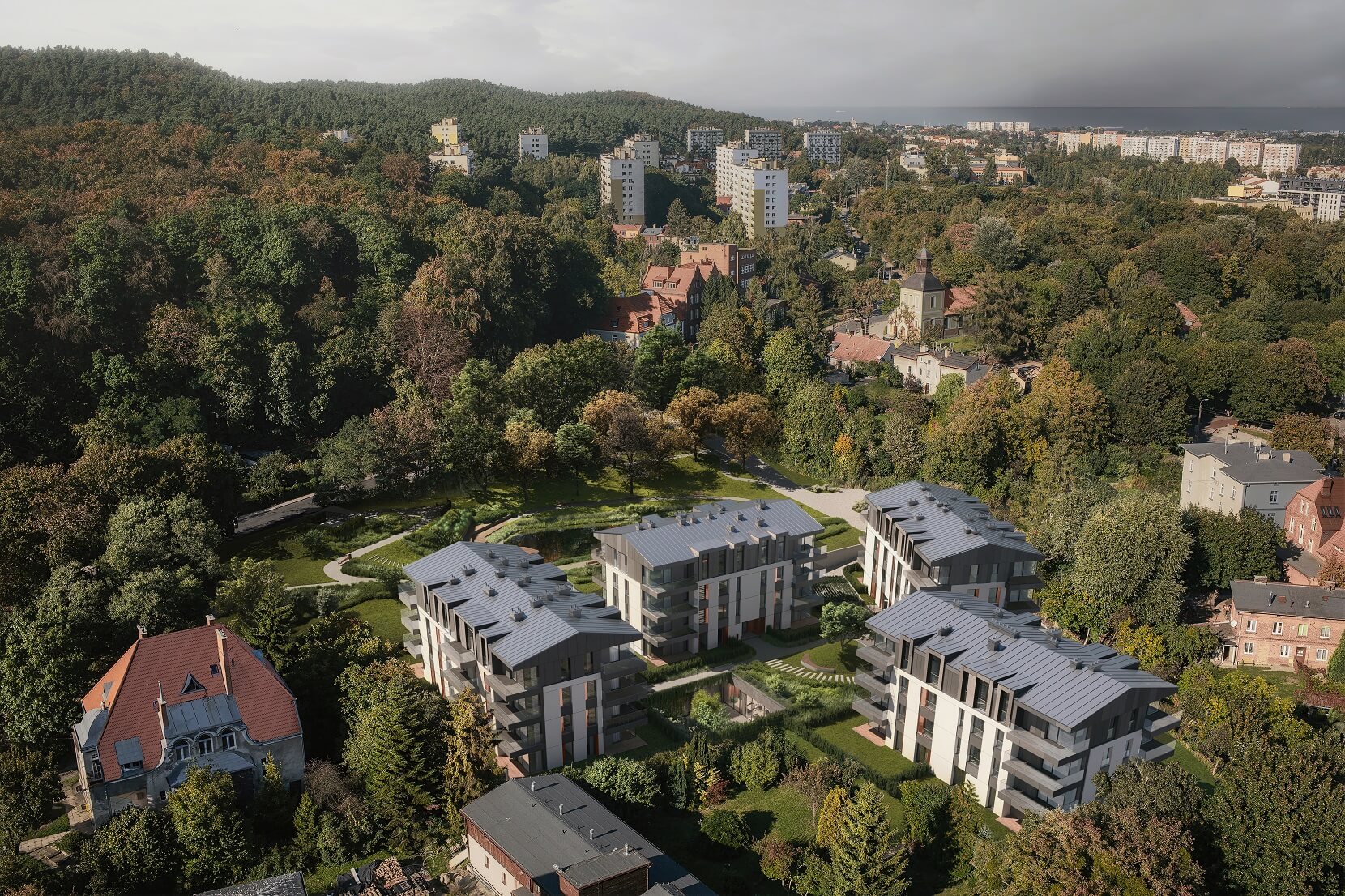 Kameralne, trzypiętrowe budynki z lukarnami na ostatniej kondygnacji nawiązującymi do oliwskiej zabudowy, zostaną zbudowane na skraju parku. Pomiędzy budynkami powstanie specjalnie zaprojektowania przestrzeń dostępna dla przyszłych mieszkańców – z placem zabaw dla dzieci oraz strefą fitness z saunami i salą klubową dla dorosłych.
