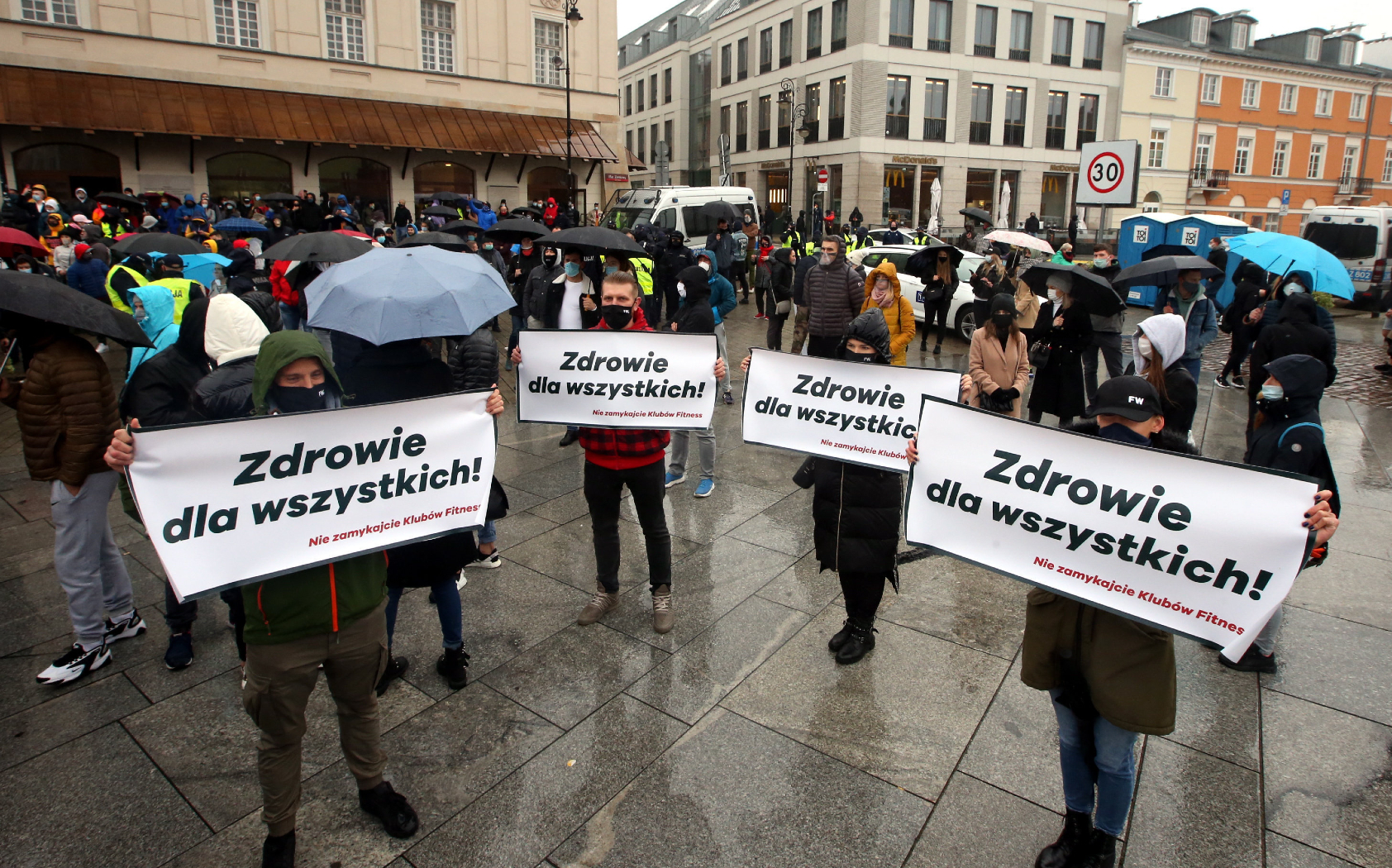 Kogo nie porwała pierwsza fala, z przerażeniem obserwuje drugą. Kolejne branże ślą rozpaczliwe apele, by nie zamykać, bo zginą. Dziś branża fitness zorganizowała protest przeciwko przepisom nakazującym im zamknięcie. Odbył się w Warszawie i nie był oficjalnie zgłoszony, więc organizatorzy zapowiedzieli, że będzie „spontaniczny”. „Nie przeżyjemy kolejnego lockdownu. Wszystko albo nic” – piszą przedstawiciele Polskiej Federacji Fitness. Kolejne branże szykują się do protestów, choć często brak dobrej organizacji ogranicza im możliwości. Podobnie jak przepisy zakazujące zgromadzeń publicznych powyżej dziesięciu osób. Nie wszystkie grupy przedsiębiorców mają, jak rolnicy, swoich Michałów Kołodziejczaków.
