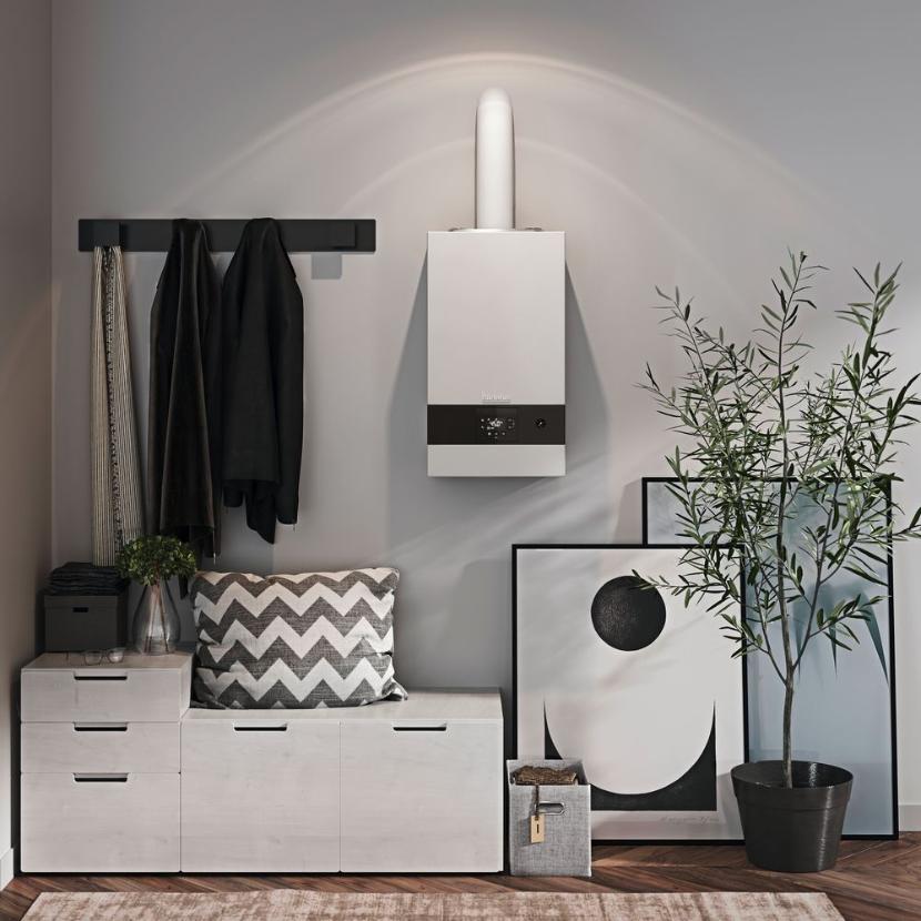 Z tego samego powodu kocioł kondensacyjny można zamontować niekoniecznie w specjalnie dedykowanym pomieszczeniu – kotłowni – ale na przykład w kuchni. Kocioł wiszący, wkomponowany w wystrój wnętrza, zbliżony rozmiarami do sąsiadujących szafek, nie rzuca się w oczy i nie psuje estetyki wnętrza.