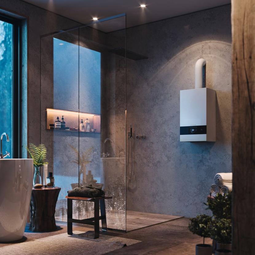 Jak to działa? Część ciepła ze spalin, które w kotle atmosferycznym byłoby stracone (uciekłoby przez komin), w kotle kondensacyjnym odzyskuje się dzięki kondensacji zawartej w spalinach pary wodnej, powstałej w wyniku spalania gazu. Odzyskane w procesie skraplania ciepło zostaje przekazane do instalacji centralnego ogrzewania.