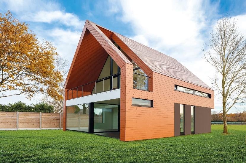 Dach pokryty płytką małoformatową wydaje się lekki i jednorodny, a właściwie dobrany kolor jeszcze bardziej podkreśla ten efekt. Podczas produkcji wierzchnia warstwa płytki jest barwiona pigmentem i pokrywana kolorową powłoką akrylową. Dzięki tej metodzie kolor jest niezwykle trwały.