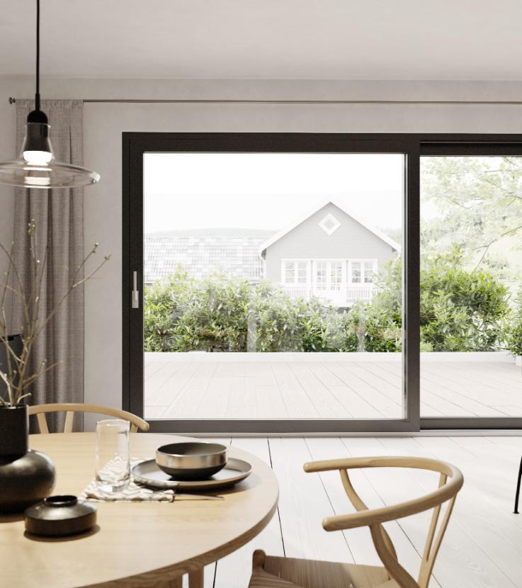 Nie bez znaczenia pozostaje także doświetlenie wnętrza. Ten model drzwi tarasowych oferuje widocznie więcej przestrzeni, którą wypełnia znacząca ilość wpadających promieni słonecznych. Nawet w pochmurne dni drzwi HST zagwarantują w pomieszczeniu odpowiedni poziom naturalnego światła i zniwelują poczucie zaciemnienia przestrzeni. Zastosowanie licznych przeszkleń to zatem zwrot w stronę ekonomiczności, jak i ekologiczności gospodarstwa domowego, gdyż dzięki wysokiemu stopniowi doświetlenia przestrzeni mieszkalnej, nie ma konieczności zużywania energii elektrycznej.
