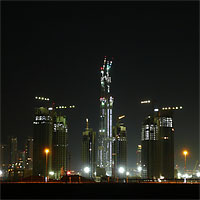 Pod względem zajmowanej powierzchni oraz liczby mieszkańców Dubaj przypomina Warszawę. Na tym podobieństwa się kończą. Arabskie miasto - jedna z siedmiu prowincji Zjednoczonych Emiratów - należy do najszybciej rozwijających się aglomeracji na świecie. Ktoś policzył, że co czwarty żuraw pracuje właśnie w Dubaju, który jest jednym wielkim placem budowy. Aż cztery dźwigi stoją na czubku Burdż Dubaj - mierzącego 700 m najwyższego drapacza chmur na świecie (160 pięter), którego budowa jest właśnie na ukończeniu (pochłonie 850 mln dol.). Strzelista betonowa konstrukcja, otoczona lasem wysokościowców, poraża ogromem.