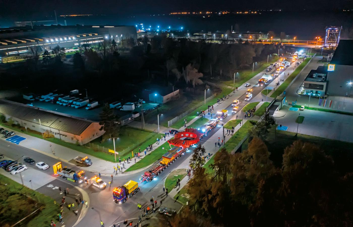 W minionym roku Polskę zelektryzował transport wyjątkowej maszyny TBM (Tunnel Boring Machine), przygotowanej do drążenia tunelu na budowie drogi ekspresowej S19 w Babicy koło Rzeszowa. Był to jeden z najtrudniejszych i najbardziej złożonych projektów przewozu tak ogromnego ładunku, realizowanych do tej pory w naszym kraju. Z Hiszpanii do Polski przetransportowana została w częściach maszyna o masie ponad 4 tys. ton, długości 107 m i tarczy drążącej o średnicy 15,2 m! Cała procedura składała się z kilku etapów i była realizowana przy wykorzystaniu transportu drogowego, morskiego i rzecznego. Największe części maszyny o łącznej masie 1900 ton przypłynęły do Polski w październiku 2022 r., a następnie barkami zostały spławione Odrą do Opola. Stamtąd w dwóch konwojach, z wykorzystaniem specjalnej platformy z samojezdnymi osiami (liczącymi aż 34 osie), były nocami przewożone do Babicy koło Rzeszowa.