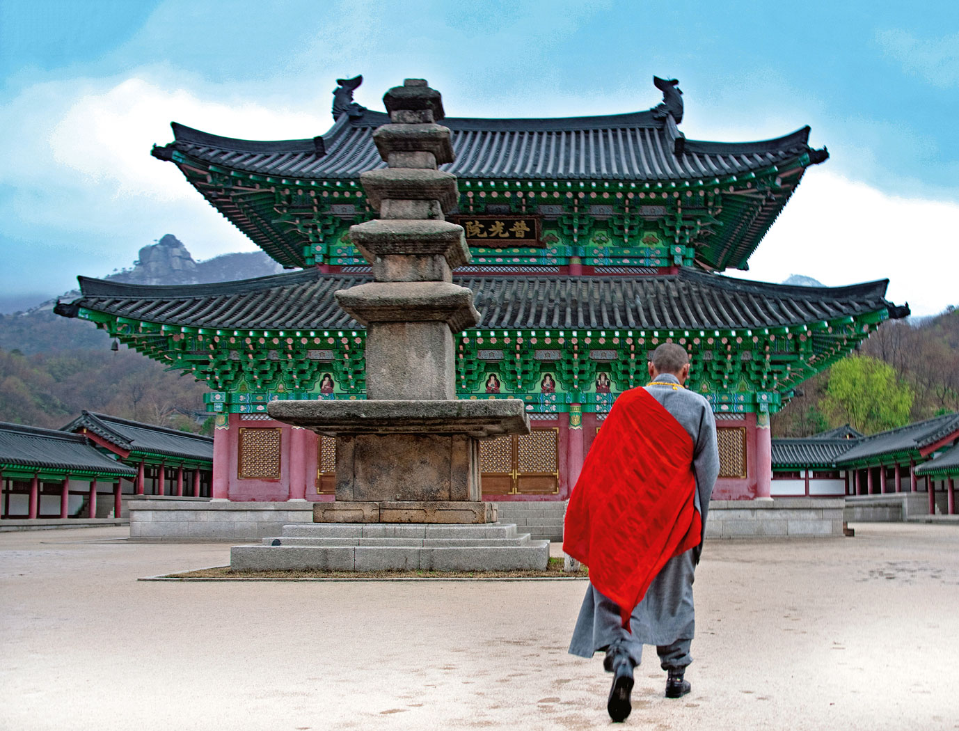 Popta mieszka w górskiej pustelni, o godzinę drogi od świątyni Eunhaesa (prowincja Gyeongsang), której jest opatem. Buddyjskie pawilony są tu niezwykle ascetyczne, a odwiedzających wita pomnik Bodhidharmy, mitycznego założyciela tradycji zen, o nietypowej w buddyzmie dzikiej aparycji.