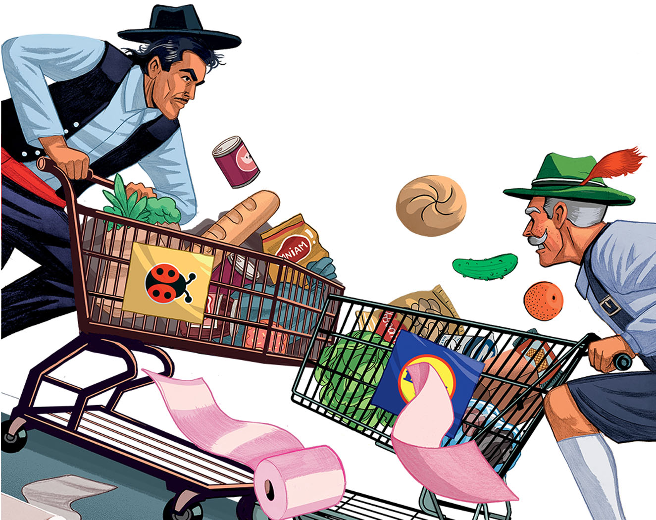 Taniej w Lidlu czy Biedronce? Na to pytanie ma w Polsce odpowiedzieć sąd. Taki jest kuriozalny finał prowadzonej od tygodni bitwy dwóch najpotężniejszych w naszym kraju sieci handlowych. W styczniu Lidl chwalił się w reklamach, że w 2023 r. był tańszy od Biedronki. Powoływał się na badania dwóch koszyków zakupowych, prowadzone przez dziennik „Fakt” oraz firmę ASM Sales Force Agency. Biedronka odpowiedziała ogromną kampanią marketingową, w której poszła na całość. Ogłosiła, że tańsza od Lidla jest ona, i to nieprzerwanie od 2002 r. Wybrała rok nieprzypadkowo, bo to moment wejścia niemieckiego Lidla na polski rynek. Portugalczycy z Jeronimo Martins są obecni u nas od 1997 r., gdy kupili liczącą wówczas zaledwie 200 sklepów Biedronkę (założoną dwa lata wcześniej) od Elektromisu Mariusza Świtalskiego.