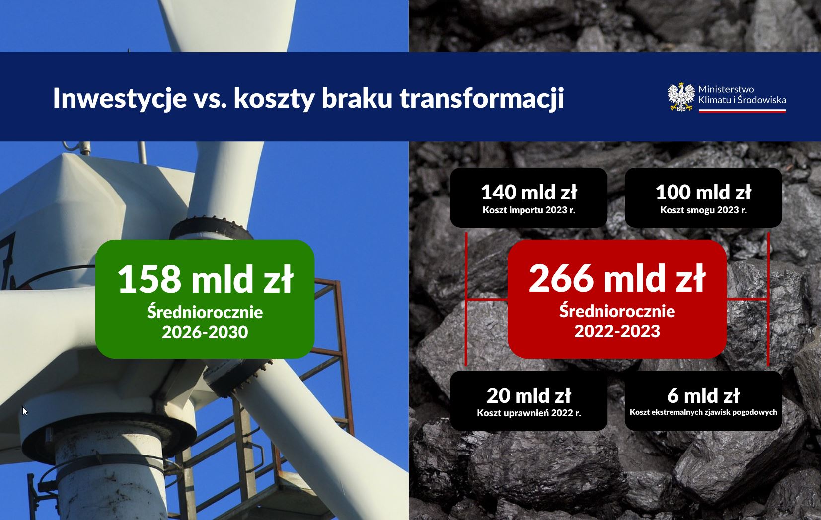 - 158 mld zł rocznie – szacowany roczny koszt inwestycji, dzięki którym zredukujemy koszty braku transformacji