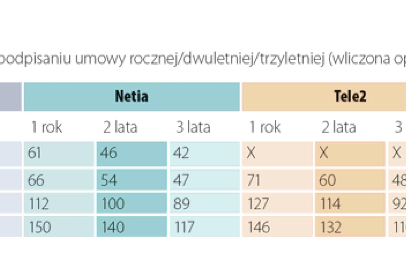 Dzięki decyzjom Urzędu Komunikacji Elektronicznej, który zmusza Telekomunikację Polską do podzielenia się swoimi liniami z konkurencją, kolejne firmy sprzedają szybki dostęp do Internetu coraz taniej. Najgłośniej reklamowane oferty mają jednak dwie wady. Po pierwsze, wyjątkowo niskie opłaty dotyczą tylko kilku lub kilkunastu pierwszych miesięcy. Później cena rośnie, często dość gwałtownie. Dlatego w naszym zestawieniu ofert największych dostawców Internetu podaliśmy uśrednione opłaty miesięczne w całym okresie trwania umowy.