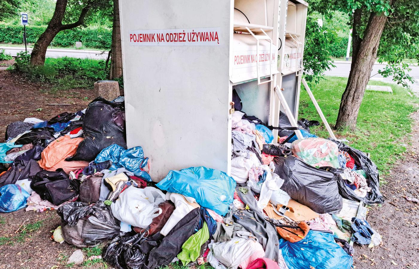 Kontenery PCK, przeznaczone na odzież używaną, ale wciąż w dobrym stanie, zaczęły być traktowane jak kubły na ubraniowe odpady. Niektórzy próbują do nich wrzucać nawet dywany czy poduszki, a co się nie mieści, zostawiają dookoła. – Od wejścia w życie nowych przepisów do naszych pojemników zaczęło trafiać dużo więcej odzieży w złym stanie, której nie możemy ponownie wykorzystać. Wzrosły zatem koszty utylizacji takich odpadów, a firma, z którą mieliśmy kontrakt na obsługę kontenerów, wypowiedziała nam umowę. Dotąd zasada była taka, że my wykorzystujemy zebrane ubrania w dobrym stanie, a w przypadku reszty tekstyliów dostajemy określoną kwotę za każdy kilogram od operatora, który następnie sam je zagospodarowuje według swoich potrzeb – wyjaśnia Agnieszka Supińska, rzeczniczka Polskiego Czerwonego Krzyża.