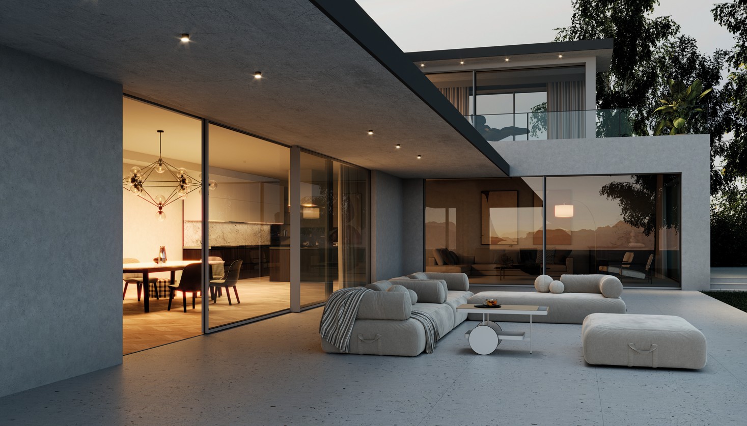 Aluminiowe rozwiązania o wąskich profilach pozwalają na bardzo duże przeszklenia przy zachowaniu odpowiedniej sztywności, izolacyjności i pozostałych wymaganych parametrów technicznych. Ograniczona do niezbędnego minimum szerokość konstrukcji nośnej w oknach i drzwiach na rzecz szkła, niewidoczne okucia, ukryte zawiasy i mechanizmy sterujące – to wszystko przekłada się na czystą formę konstrukcji i maksymalne doświetlenie wnętrza. Dodatkowo dzięki istniejącym w niektórych produktach rozwiązaniom pozwalającym zabudować ościeżnice i progi w ścianach, suficie i podłodze możliwe jest stworzenie efektu jednej powierzchni łączącej wnętrze z tarasem lub przestrzenią zewnętrzną budynku. Technologia idzie tu w parze z estetyką – a rezultat to przestrzeń, która nie rozprasza, lecz uspokaja.