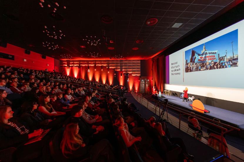 Właśnie ta perspektywa odbiorcy znalazła się w centrum przejmującego wystąpienia w języku migowym. – Po co tu jestem? Oto ja, głucha osoba. Czy wyglądam na taką? Co to znaczy wyglądać na głuchą osobę? Jestem pewna, że jakbyśmy teraz porozmawiali o waszym dotychczasowym życiu, to na pewno byście powiedzieli: „No może raz spotkałam, może dwa razy spotkałam osoby Głuche, może nigdy”. To nie jest prawda. Jestem pewna, że spotkaliście taką osobę w autobusie, albo prowadziła samochód, który jechał obok was. Może wasi znajomi mają kogoś głuchego w rodzinie. Głusi są wszędzie, ale nas nie widać. Widać nasz język – podkreśla Renata Świderska-Noworyta, trenerka oraz organizatorka warsztatów dla tłumaczy polskiego języka migowego (PJM).
