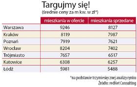 W ofertach deweloperów też dominują ceny marzeń. Firma doradcza redNet Consulting podaje, że wprowadzane do sprzedaży lokale są droższe od tych, które już czekają na kupca. Jakby załamania popytu nie było. – Kto pierwszy pęknie? Kupujący czy sprzedający? – pyta Robert Chojnacki, prezes redNet Consulting. Raport firmy daje odpowiedź: średnie ceny mieszkań sprzedanych w drugim kwartale w największych polskich aglomeracjach były sporo niższe od ofertowych (w Trójmieście o 15 proc., w Warszawie o ponad 12 proc.). Czyli wygrywa klient.