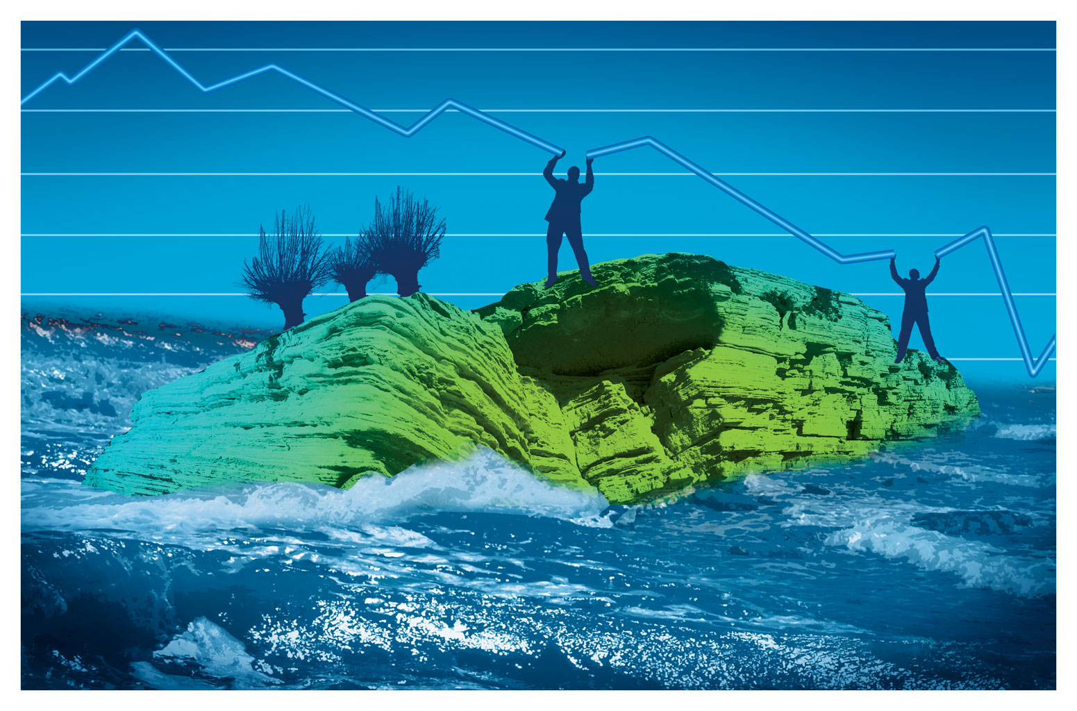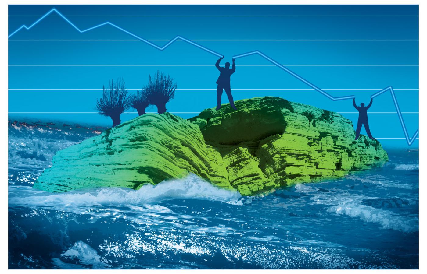 Zielona wyspa walczy z falami