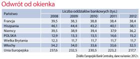 I tak od 2008 do 2012 r. sieć oddziałów bankowych w całej Unii zmniejszyła się z 237 tys. do 217 tys., czyli aż o 20 tys. punktów. Najwięcej placówek zamknięto w Hiszpanii, która do niedawna była pod tym względem europejskim liderem. Ubyło ich również we Włoszech i Francji. Podobny trend widać też w Niemczech, pozostających przecież w dobrej kondycji gospodarczej. Czy Polska pójdzie śladem tej rewolucji?