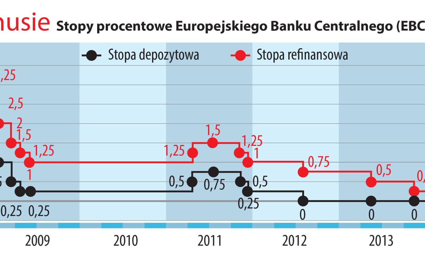 Wszystko dlatego, że rządy i banki centralne wielu krajów, zwłaszcza w Unii Europejskiej, nie uporały się dotąd z wtórnymi konsekwencjami globalnego kryzysu finansowego sprzed 7 lat. Standardowe metody stymulowania wzrostu gospodarczego zostały w zasadzie wyczerpane (m.in. stopy procentowe wielu banków centralnych spadły niemal do zera), więc desperacko szuka się innych, niekonwencjonalnych. W czerwcu 2014 r. Europejski Bank Centralny (EBC) po raz pierwszy w swojej historii obniżył stopę depozytową do minus 0,1 proc. Główny cel tego ruchu, jak mówił Mario Draghi, prezes EBC, to zniechęcenie banków komercyjnych do przechowywania pieniędzy na bezpiecznych kontach we Frankfurcie, a zachęcenie do rozwijania akcji kredytowej, zakupów obligacji korporacyjnych i akcji. Wszystko po to, żeby zaktywizować banki, zwiększyć inwestycje, produkcję przemysłową, podreperować rynek pracy, wzmocnić konsumpcję, a tym samym ograniczyć ryzyko utrwalenia się deflacji.