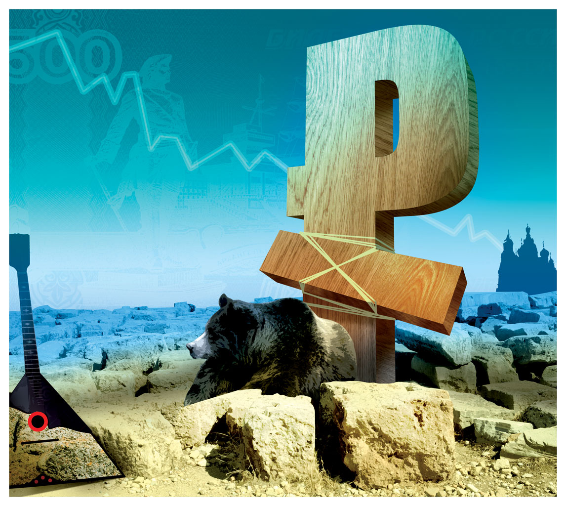 Potem nadeszła chwila próby – globalny kryzys finansowy. Mimo czasowego spadku cen ropy naftowej i ostrej, lecz krótkotrwałej recesji w 2009 r., rubel nieźle wytrzymał światowe zawirowania. Najskuteczniejszą (do czasu) bronią Kremla w obronie waluty okazały się ogromne rezerwy walutowe, które Rosja zgromadziła w czasach wysokich cen ropy, a których część poświęciła na obronę stabilności gospodarki. Po krótkotrwałym osłabieniu rubel zaczął się znów wzmacniać. Na tyle, że Rosjanie najwyraźniej uznali, że wreszcie dysponują prawdziwie twardą, światową walutą. I ponownie odtrąbili ostateczny sukces, zaczęli mówić o konieczności zastąpienia dolara, jako głównej waluty rezerwowej świata, przez koszyk walut zawierający rubla, a w 2010 r. podpisali umowę o rozliczaniu się z Chinami w walutach krajowych (a więc o niby-uświatowieniu waluty, choć tylko w relacjach z jednym partnerem). No i ukoronowali ten okres triumfu, wprowadzając od 2014 r. nowy, nieco kabotyński symbol rubla – zapisaną cyrylicą literę R z podwójnym przekreśleniem, jak w dolarze.