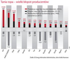 Choćby takich jak Libia, Nigeria czy Wenezuela, kraje generalnie biedne, które miały szczęście odkryć duże złoża ropy i z tego źródła finansowały większość wydatków socjalnych. Ale to już przeszłość. Dzisiaj to właśnie one najbardziej cierpią z powodu spadku cen surowca, bo nie mają alternatywy dla finansowania bieżących wydatków i rozwoju. Wenezuela ma dziś najwyższą w świecie inflację – w 2015 r. sięgnęła ona 141 proc. Nigeria do tej pory zasilała swój budżet w 75 proc. ze sprzedaży ropy, a Libia nawet w 95 proc. Ten ostatni kraj jest i tak w stanie wojny domowej, a niskie ceny ropy, będącej jedynym źródłem dewiz, na pewno nie ułatwią przywrócenia tam spokoju.