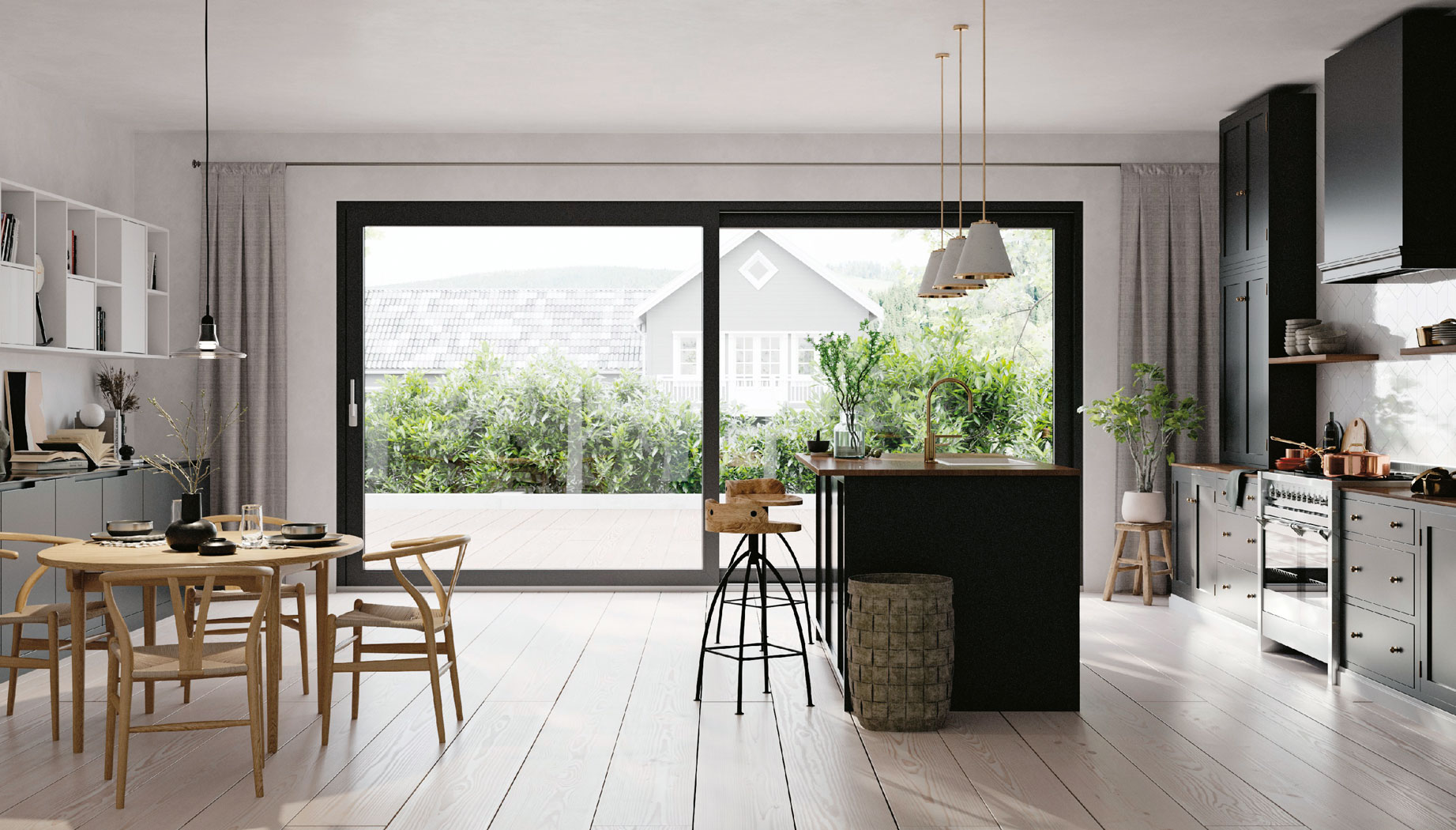 Duże okna mogą przybrać formę przeszklonych drzwi, dzięki którym wygodnie będzie wychodzić na taras lub do ogrodu. – Dawniej duże drzwi tarasowe kojarzyły się ze znacznymi stratami ciepła i trudnością obsługi. Obecnie nawet bardzo duże systemy mogą być bardzo proste w codziennym użytkowaniu. Specjalistyczne okucia, na przykład w naszych drzwiach HST Premium, gwarantują, że skrzydła swobodnie i bez najmniejszego oporu przesuwają się względem siebie lub względem nieotwieranych części konstrukcji. Ale to nie wszystko. Możliwe jest też zastosowanie okucia napędzanego silnikiem, co wpisuje się w obecne trendy związane z automatyzacją naszych domów – mówi Mike Żyrek, dyrektor Działu Badań i Rozwoju w OKNOPLAST.