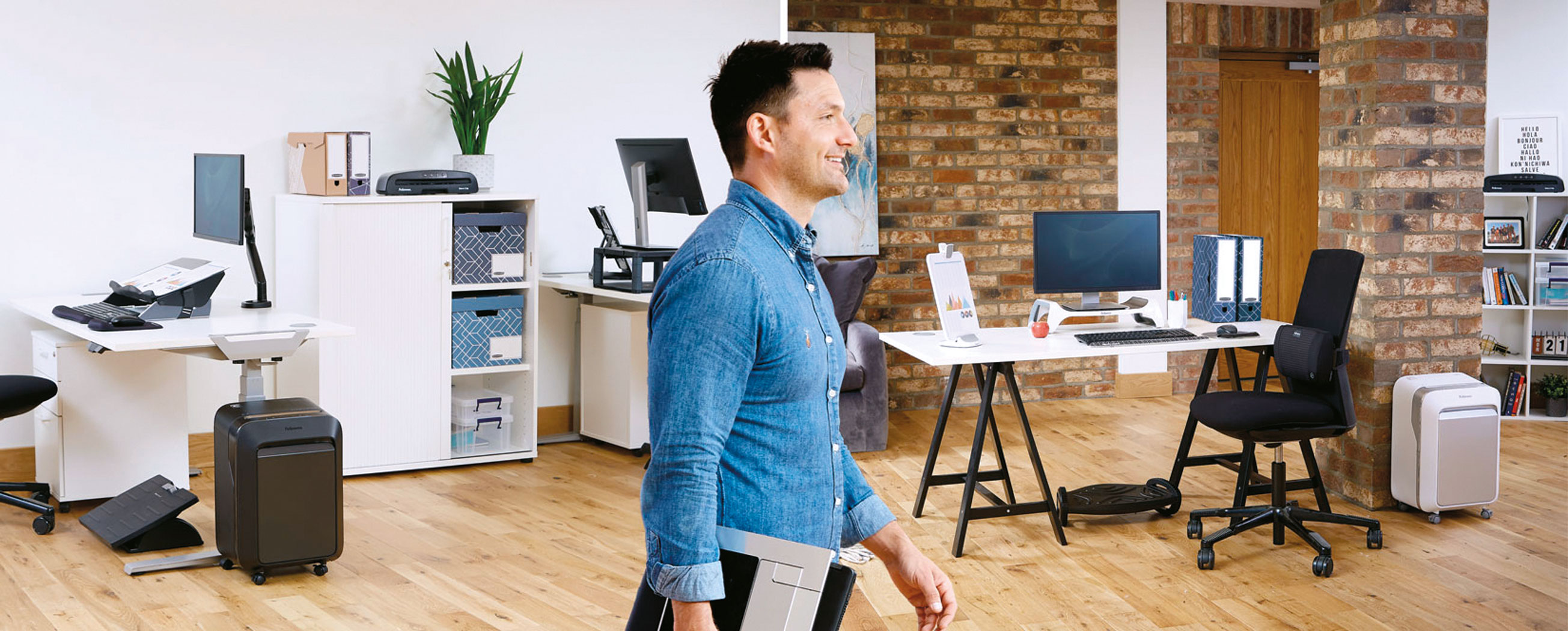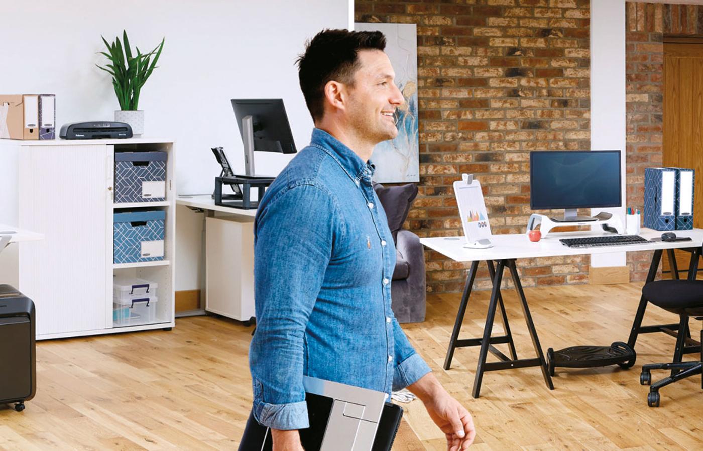 Ten problem można rozwiązać dzięki specjalnym akcesoriom. Wiele firm wdraża dziś modele pracy hybrydowej, aby odpowiedzieć na oczekiwania zarówno osób przywiązanych do pracy zdalnej, jak i tych preferujących model stacjonarny. Warto zatem zwrócić uwagę na produkty, które pomagają stworzyć bezpieczne i mobilne biuro. Należą do nich na przykład akcesoria firmy Fellowes: składana podstawa pod laptop Hylyft, podkładka pod mysz Palm czy podpórka lędźwiowa I-Spire, nakładana na dowolne krzesło. Mały, bezprzewodowy zestaw klawiatury i myszy, rozłożony na dowolnym biurku, także pomoże w zorganizowaniu wygodnego stanowiska pracy.