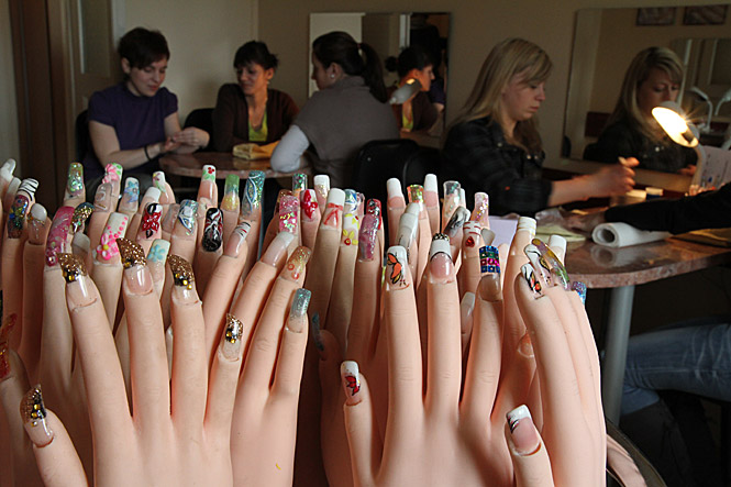 Nail prolongment panie robią w dwójkach jedna drugiej. Za tydzień, jak paznokcie podrosną, zobaczą, jakie popełniły błędy. A w czasie, kiedy będą rosły, panie pójdą w nail art. Obecnie modny jest russian style, bogato zdobione paznokcie w kształcie sztyletu, nail folk art oraz puzzle – wszystkie paznokcie naraz tworzą całościowy obraz, np. impresję z ciepłych krajów: na kciuku jest plaża, na serdecznym drink z zatopioną parasolką itd. Odcienie mają symbolizować, że w życiu jest OK. Odcienie dające efekt OK to w tym sezonie fuksja, jagoda, śliwka, metaliczny granat.