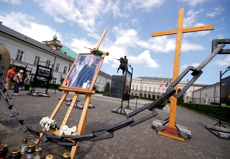 27 czerwca, w dzień pierwszej debaty Komorowski–Kaczyński, od rana pod krzyżem słychać szepty litanii do św. Michała Archanioła, Pogromcy Szatana i Zwierzchnika Raju: „Kyrie eleison... św. Michale, wodzu wojska niebieskiego; św. Michale, przedstawiający Najwyższemu prośby nasze, św. Michale, chorąży zbawienia...”. Codziennie do przedwyborczej soboty nowennę publikuje „Nasz Dziennik”, włączając się w dzieło błagalne w intencji Polski. Pod krzyżem można dostać ksero litanii. I naklejki: Przebrała się miarka, głosuję na Jarka. Jedną przyklejono na słupku obok krzyża. Kobieta do policjanta: – A co pan jesteś cenzorem tego pojęcia?