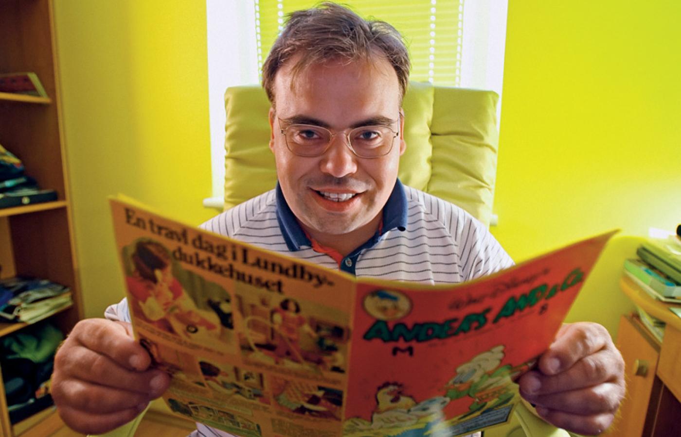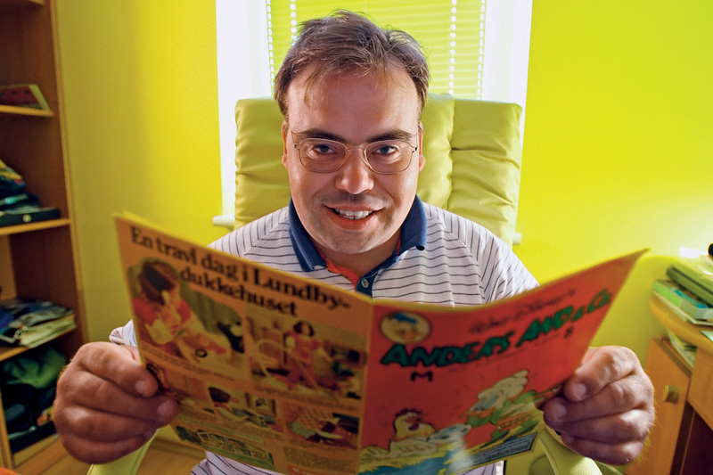 Michał najbardziej polubił namiot UNICEF, bo tam było dużo dzieci. Wrzucił do puszki swoje oszczędności na biedne dzieci w całym świecie. Bo za to, jaki jest, dostaje w Danii rentę. Trzyma ją mamusia, która opłaca jego udział w czynszu za dom, telewizję, telefon, pranie, jedzenie, kupowanie ubrań, które stale przypala papierosami, sprzątanie. Michał, poproszony o sprzątnięcie biurka, przełoży papiery na drugi koniec i mu się wydaje, że w przestrzeni, którą ogarnia, jest już czysto. Przy czym jest precyzyjny. Kołdra nie może leżeć guzikami przy szyi.