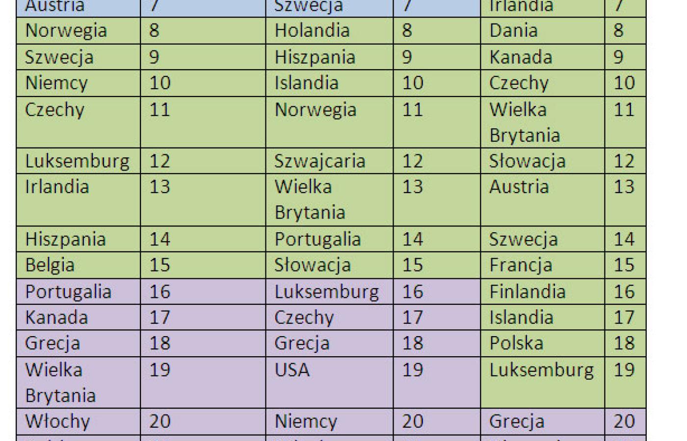 Skrótowe wyniki podajemy w tabeli I (zobrazowane są nierówności wśród dzieci w trzech obszarach - im płytsze różnice, tym wyższe miejsce danego kraju) oraz w tabeli II (znajdują się generalne wyniki badania - im wyższa cyfra, tym lepiej dany kraj stara się zapewnić równe szanse swoim dzieciom).
