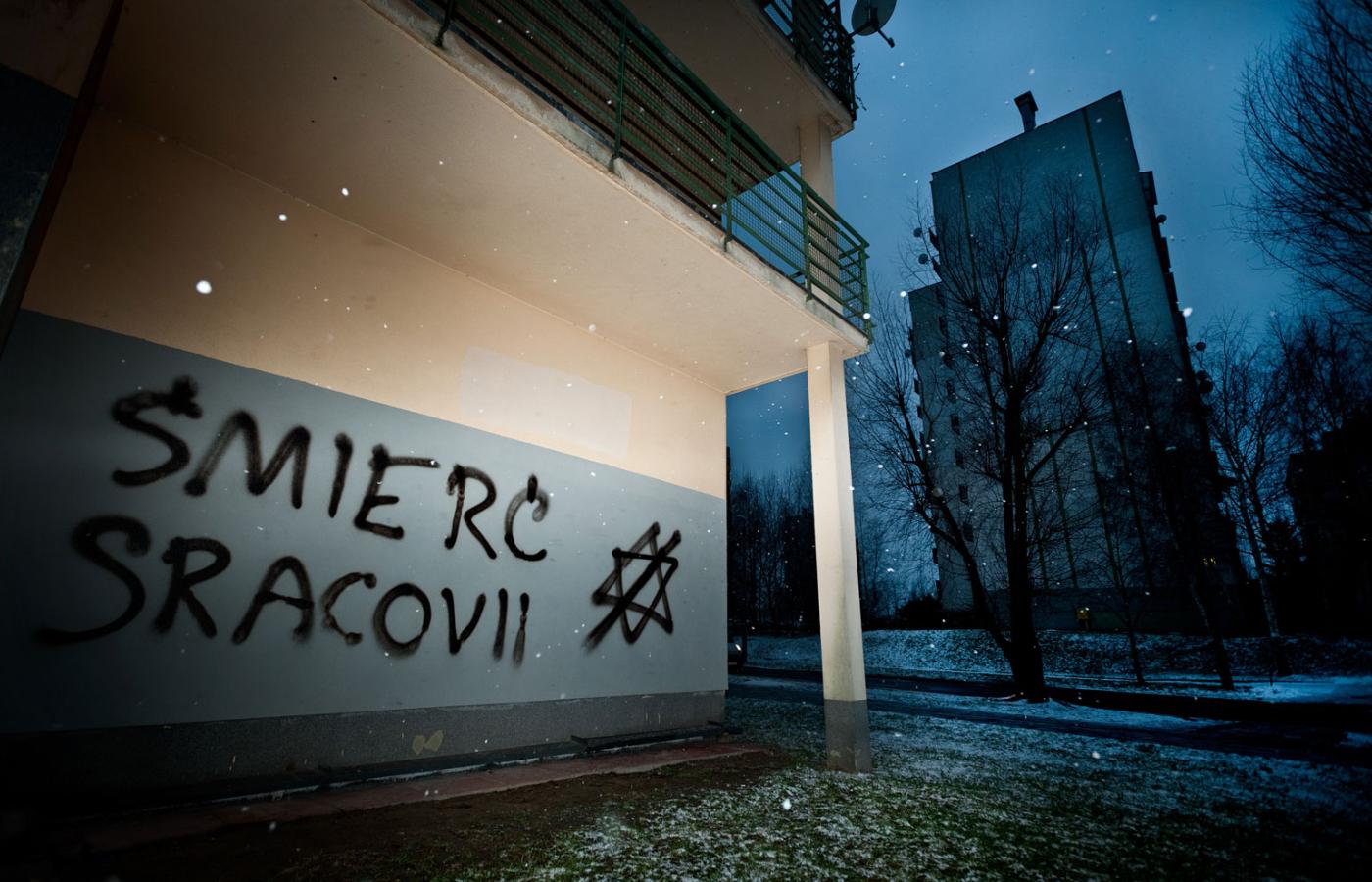 Kilkadziesiąt metrów od miejsca, gdzie zginął Tomasz Cz., na czystej do niedawna elewacji jednego z domów ktoś namazał sprayem „Śmierć Sracovii”. Bojowiec Wisły, kto wie, może sam Shrek, musiał wykazać się nie lada odwagą, aby w mateczniku kibiców Cracovii umieścić swoje hasło. Autorzy graffiti są anonimowi. Pracują w pustej przestrzeni, po kryjomu. Pstrzą mury niezliczoną ilością haseł nawołujących do wojny. To często wyspecjalizowane komanda kibicowskich ekip, spece od prac plastycznych.
