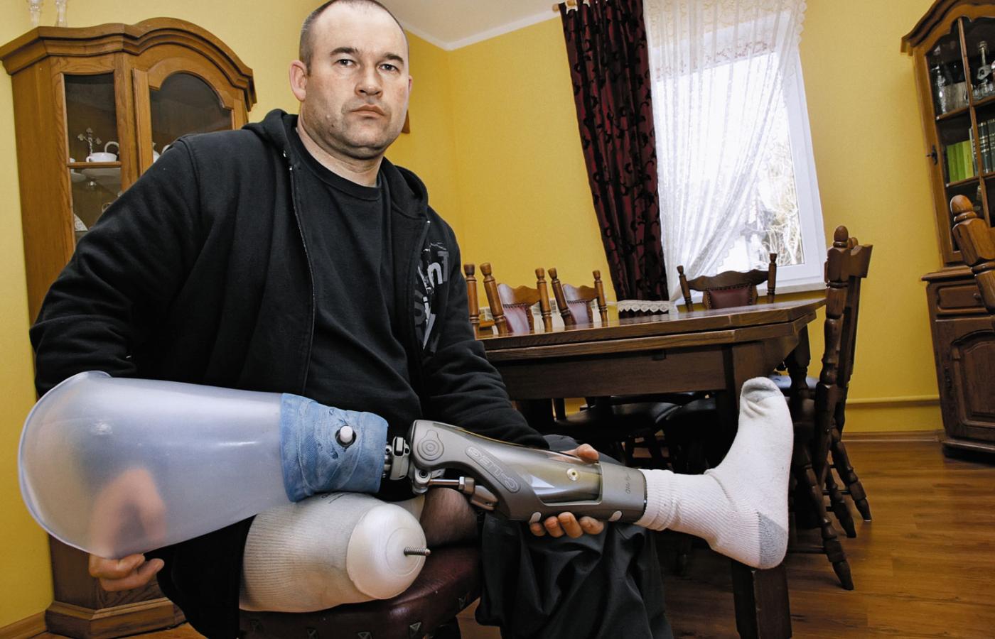 Tak na co dzień to ta moja dawna noga też mi towarzyszy. Ale to już nie jest takie przyjemne jak we snach. O, na przykład teraz to czuję piętę. Boli, jakby ją ktoś ciął piłą. Innym razem to ból jest taki, jakby ktoś szorował nogą po chropowatym betonie. Albo jakby ktoś ją miażdżył. To różnie jest w różne dni. Najgorzej na początku było. Przez pierwszych pięć dni bolało tak między 7 a 8. Ból się tak liczy. Zero to nic nie boli. A 10 to też nic, bo z bólu po prostu tracisz przytomność.